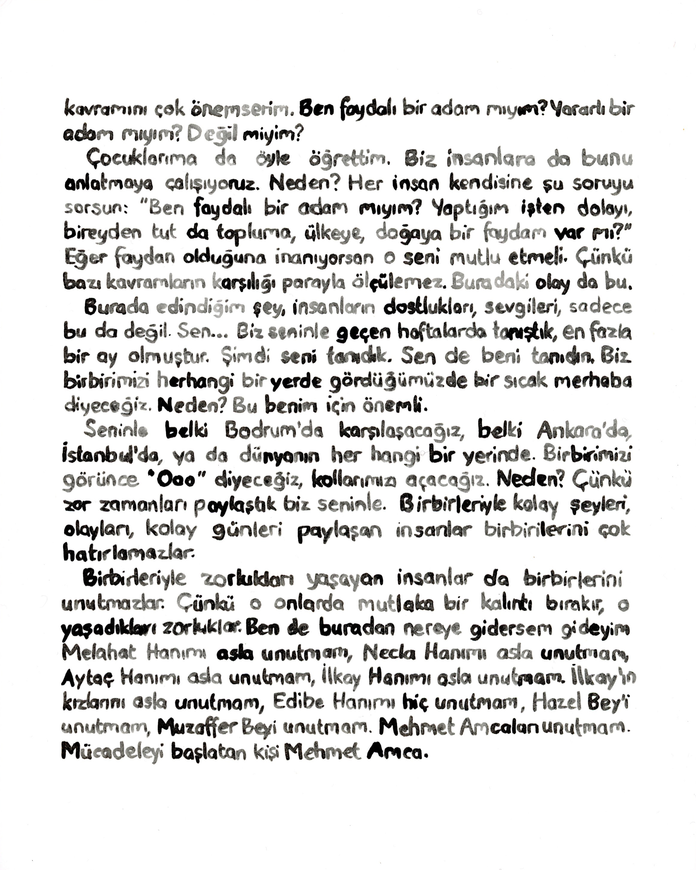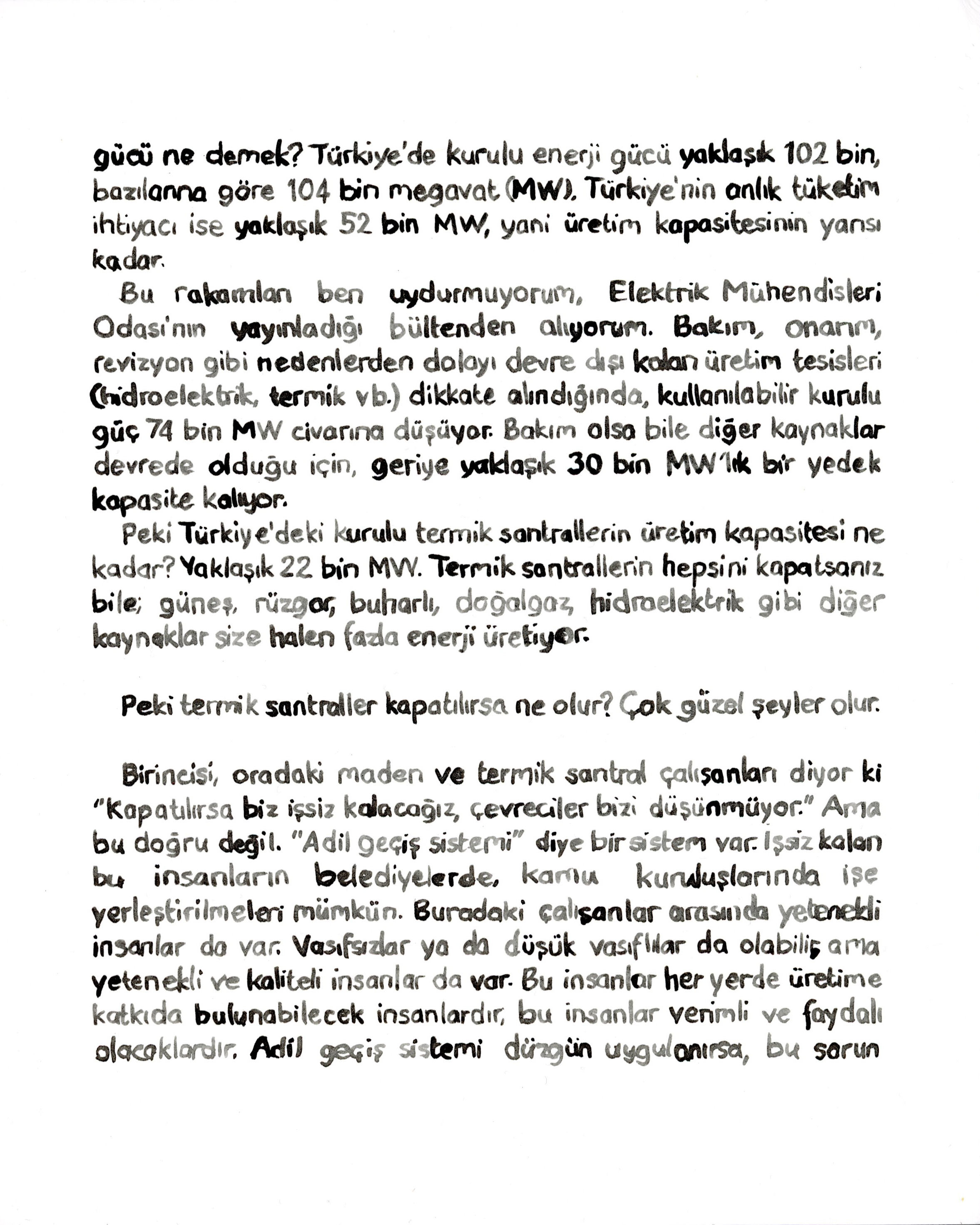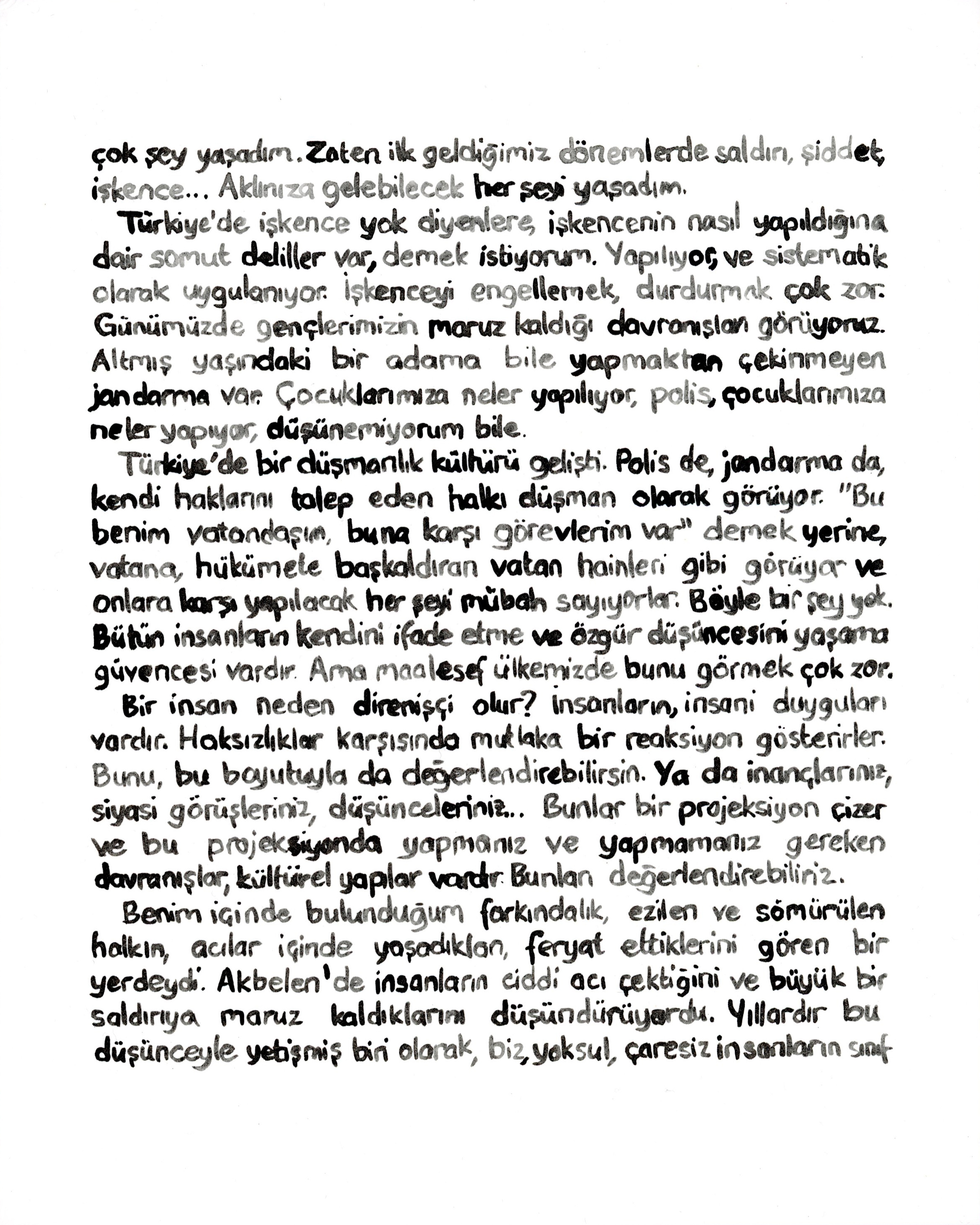 Watercolor of the transcription of our interview with Aytaç, a longtime resident of İkizköy, where she lived for 35 years before the land was sold to the coal mine under false pretenses.