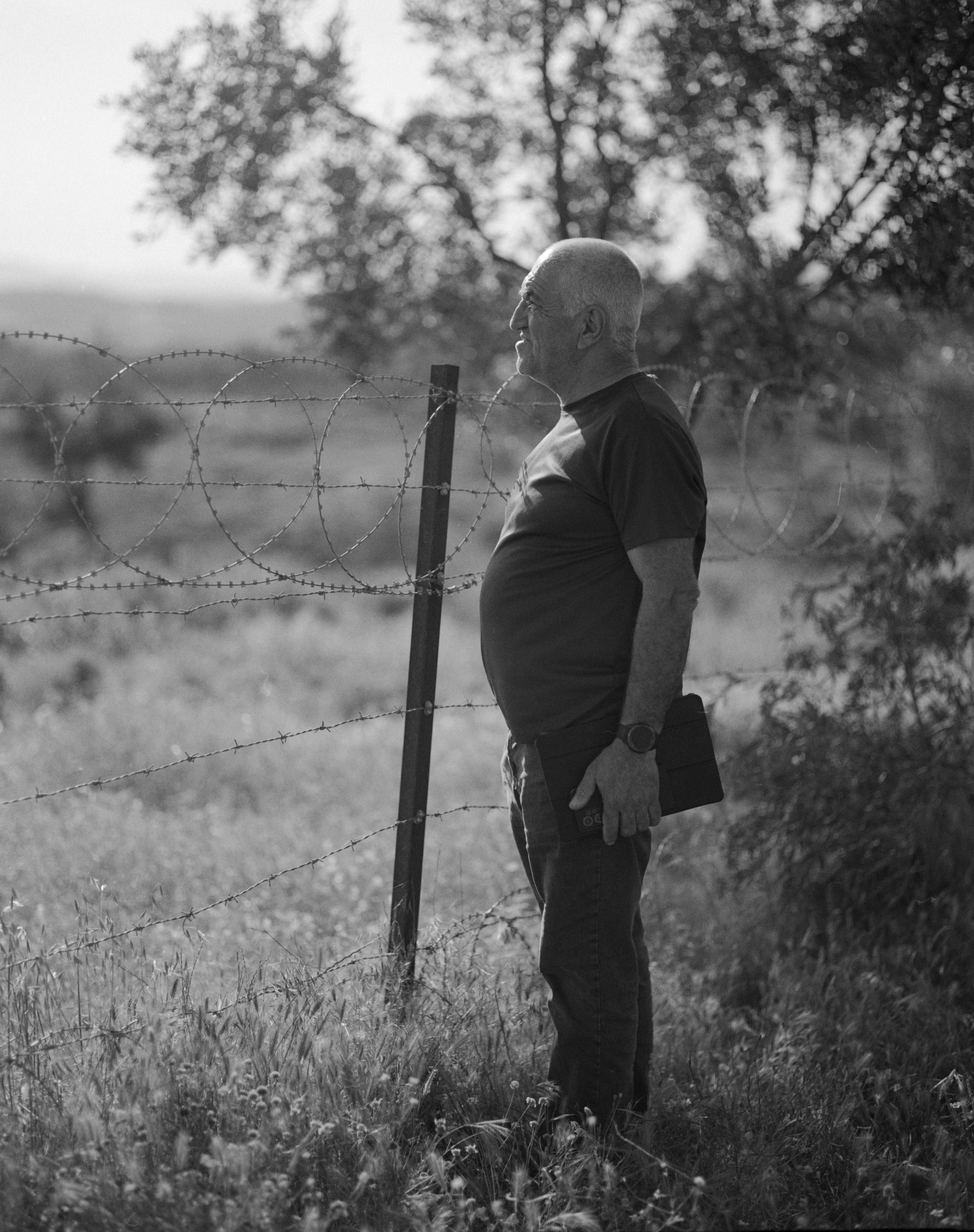 Tuncer, reading his manifesto in their garden next to the mine, formerly Akbelen Forest, 2024.
